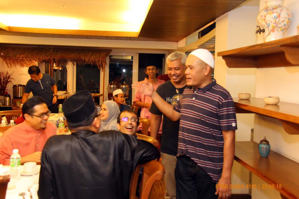 Ada yang hairan dengan keakraban kami. Memang mereka patut hairan macamana kami dapat bersama selama berpuluh-puluh tahun. Ucapan terimakasih aku kepada 2 rakan kami yang bukan beragama Islam yang sama-sama datang berbuka puasa pada malam tersebut. Manimaran dan Jeffrinder Singh merupakan 2 orang penyamun yang bersama-sama kami di waktu susah dan senang selama 5 tahun kami di seremban dulu. Aku terharu kerana kali ini kedua-duanya mampu meluangkan masa untuk datang berbuka puasa bersama. In fact ke dua-duanya berbuka puasa bersama selama 5 tahun kami hidup bersama dulu.